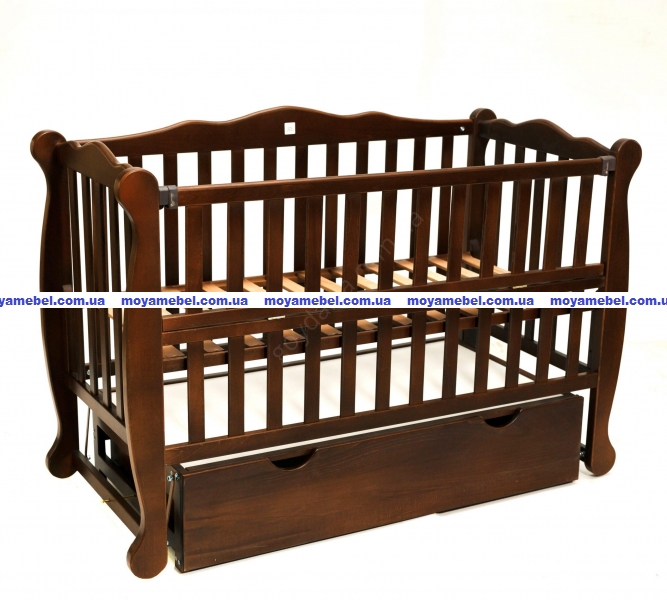 Удобная деревянная кровать имеет простую и надежную конструкцию. Модель изготовлена из массива дерева бук, который тщательно отшлифован, покрыт льняным маслом и краской на водной основе, не вызывает аллергической реакции у детей. Модель укомплектована маятниковым механизмом и откидной боковиной, а также имеет два положения матраса по высоте (30 и 47 см), которые регулируются в зависимости от роста и возраста ребенка.