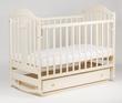 Кроватка изготовлена из экологически чистого материала массива дерева сорта ольха, все углы и плоскости кроватки скруглены для обеспечения безопасности малыша в период нахождения его в кроватке. Спальное ложе имеет 2 возможных положения установки верх и низ. Ложе оборудовано специальными ламелями которые помогают в вентиляции матрасика. Так же предусмотрена возможность опускать и поднимать переднюю решетку.