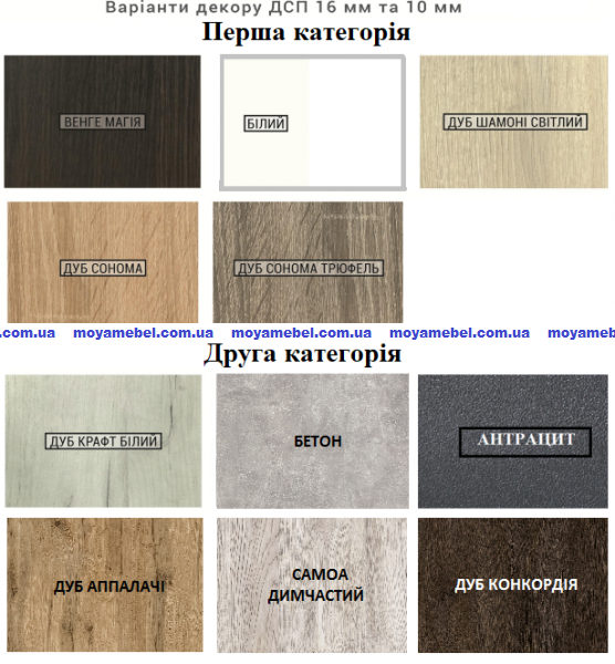 2 категория ЛДСП: дуб крафт белый, бетон, антрацит, дуб аппалачи, самоа дымчатый, дуб конкордия