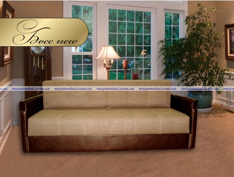 Зовнішній вигляд дивана Бос NEW говорить про добрий смак господаря. Маючи суворе виконання, відмінно впишеться в холостяцька кімнатка або вітальню подружньої пари. Його універсальність полягає в сучасному стилі дизайну. Строгість підкреслюють і гладкі прямокутні підлокітники без зайвих деталей, і вистрочка обробної товстою ниткою по всій сидушке і спинці в контраст основної тканини - дуже виділяє і робить диван багатим по дизайну. Відсутність приставних подушок робить диван зручнішим як в сидінні, так і в розкладці (спинка автоматично пріраскладке ховається в білизняний ящик).