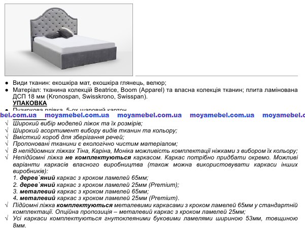 Наповнення: синтепон, пінополіуритановий деталі, ортопедичні ламелі (входять до вартості)